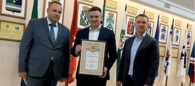 В Законодательном Собрании Свердловской области депутат Александр Каптюг вручил Почётный диплом регионального парламента руководству АО «Исетский кузнечно-механический завод» (АО «ИКМЗ»). Награда присуждена за большой вклад в развитие промышленности Свердловской области.