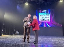 Владимир Смирнов вручил сертификат на фестивале английской песни, который ежегодно организует гимназия «Арт-Этюд».