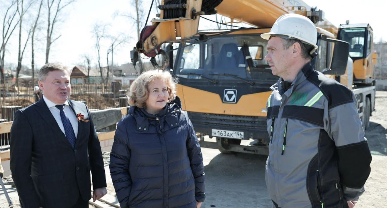 В рамках рабочего визита Людмила Бабушкина осмотрела строительную площадку будущего физкультурно-оздоровительного комплекса в Камышлове.