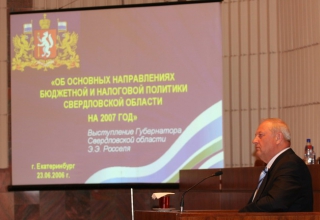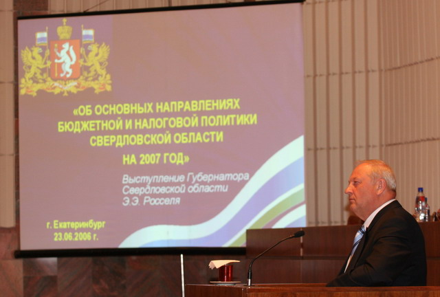 На совместном заседании Палат Законодательного Собрания губернатор Свердловской области Э.Э Россель выступил с бюджетным посланием 23 июня 2006 года