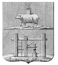 7 июля 1783 г. вместе с другими гербами Пермского наместничества был Высочайше утвержден герб, составленный А.А. Волковым, исполняющим обязанности герольдмейстера. В верхней части щита помещался герб Пермский, а в нижней — «в зеленом поле железный молот, которым выделывается железо, означающий, что в сем городе находится железоделательный завод». В 1862 г. в рамках гербовой реформы Кёне был составлен проект нового городского герба, оставшийся неутвержденным: «В зеленом поле крест, состоящий из серебряных и черных железных шапочек, сопровождаемый в углах четырьмя золотыми молотками с таковыми же ручками. В вольной части герб Пермской губернии. Щит украшен червленою башенною короною — о трех зубцах. За щитом две на крест положенныя золотыя кирки, соединенныя Александровскою лентою». Изменение композиции проекта относительно герба 1783 г. было обосновано следующим образом: «Так как изображенный в сем гербе железный молот нельзя причислить к числу геральдических фигур, то полагаю заменить оный четырьмя молотками». 25 октября 1967 г. решением исполнительного комитета Алапаевского городского Совета депутатов трудящихся Свердловской области № 336 в качестве городского герба была утверждена эмблема, созданная Ю.П. Абрамовым. Оригинальное изображение этого символа, по всей видимости, не сохранилось. В Приложении к решению горисполкома представлено следующее описание: «1. Общий вид герба имеет форму щита. Ширина вверху 50 см, внизу 44 см, с красным знаменем, обозначающим революционное прошлое нашего города. 2. Силуэт АМЗ (40 см на 32 см), обозначающий металлургическую промышленность города. Шестерня — обозначает машиностроение и станкостроение города. 3. Колос — обозначает сельское хозяйство города и района, высота колоса — 40 см. 4. Зеленое поле и ель — обозначают лесную и деревообрабатывающую промышленность. 5. В центре на темно-бордовом фоне сделана подпись белым цветом “Алапаевск” (36 см на 8)». Со временем претерпела изменение окраска фона, добавилась дата основания первого поселения на месте города — «1639», была несколько расширена трактовка включенных в городскую эмблему символов: «…Красное знамя на штыке — символ того, что Алапаевск — родина первых Советов на Урале, символ революционных и боевых заслуг; голубой фон герба означает, что город основан и развился между реками Алапаиха и Нейва». Изображение описанного символа в его последней редакции было помещено на памятном знаке при въезде в город. В начале 1990-х гг. герб 1783 г. изображался на бланках учетно-распорядительной документации, но каких-либо данных об его официальном восстановлении как городского символа не найдено. |