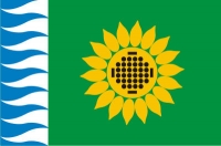 ![]() Зеленое полотнище с изображением желтого, с черными семенами (в виде 32 кружков и 4 прямоугольников) цветка подсолнечника из герба города и с полосой в виде встречных голубых и белых языков пламени вдоль древка. Соотношение сторон полотнища – 3:5. Ширина полосы составляет 1/5 от длины полотнища. Изображение цветка располагается посредине основной (зеленой) части полотнища.