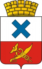 Работа над современными гербом и флагом | Работа над современными гербом и флагом началась в июне 2001 г. и сводилась к восстановлению герба 1776 г. и составлению на его основе городского флага. Символика гербовых фигур определена в описании Высочайше утвержденного герба 1776 г. |