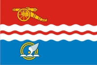 ![]() Прямоугольное полотнище с соотношением сторон 2:3, разделенное по горизонтали волнистой трехчастной бело-красно-белой полосой на равные красную и голубую части. В красной части полотнища помещено золотистое (желтое) изображение пушки из городского герба. В голубой части полотнища помещено изображение символической композиции из городского герба (кольца, крылатых брусков (слитков) и безанта), выполненное золотистым (желтым), белым и голубым цветами. Соотношение ширины частей полотнища (в случае с большей красной и голубой частями указывается средняя ширина) – 8:2:1:2:8. Центры изображений пушки и символической композиции удалены от древка на 1/4 длины полотнища.