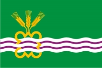 ![]() Полотнище зеленого цвета с соотношением сторон 2:3, имеющее вдоль нижнего края на расстоянии в 1/5 от ширины полотнища белую, с двумя пурпурными (сиреневыми) просветами в 1/10 от ширины полосы каждый, волнообразную полосу шириной в 1/5 от ширины полотнища. У древка на расстоянии в 1/4 от длины полотнища помещено изображение фигур районного герба (камень и колосья), выполненное желтым цветом. |