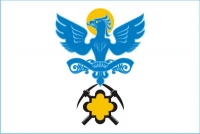 ![]() Полотнище с соотношением сторон 2:3 белого цвета, по центру которого помещено изображение фигур городского герба (орел со свитком и камень на скрещенных кирках), выполненное синим, черным и желтым цветами.