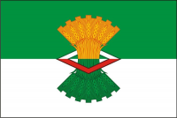 Прямоугольное полотнище с отношением ширины к длине 2:3, состоящее из двух равных горизонтальных полос зеленого и белого цветов, по центру которого помещены фигуры муниципального герба (символический двойной сноп и сквозной ромб), выполненные желтым, зеленым, красным и белым цветами. Обратная сторона зеркально аналогична лицевой.